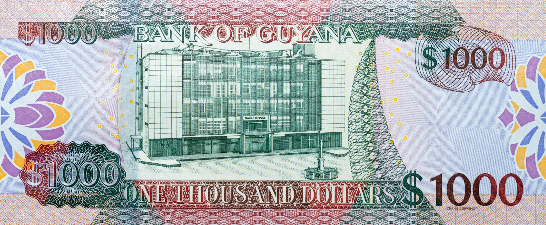 The upgraded 1,000 GYD (Guyana Dollars) banknote was issued on March 4, 2019, with a 6 mm RAPID® micro-optic security thread from Crane Currency replacing the previous holographic stripe and colorshift thread.