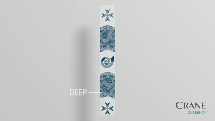Crane has now taken another step forward, or perhaps a step in a different direction, with the advent of MOTION SURFACE®. This is based on the same micro-lens technology platform, but in a miniaturised form and as its name implies, it is applied to surface of the note in the form of a stripe as opposed to being integrated as a thread. It is much thinner than its thread counterparts and can be applied, in a similar manner to foil stripes, in the printworks using a KBA-Notasys OptiNota H foil application system (in theory, other application systems could also be used).