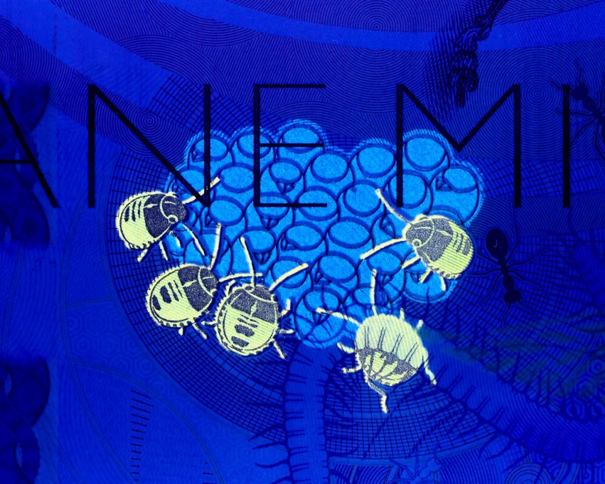 The theme of bugs provided spectacular subjects that included naturally occurring phenomena involving iridescence, ultraviolet and even near infrared wavelengths, i.e., those that we humans cannot see but can be displayed and/or detected by many types of insects. The Bug Note’s combination of visible and invisible features makes it a study of functionality effectively balancing and integrating security features for both the public and machines.