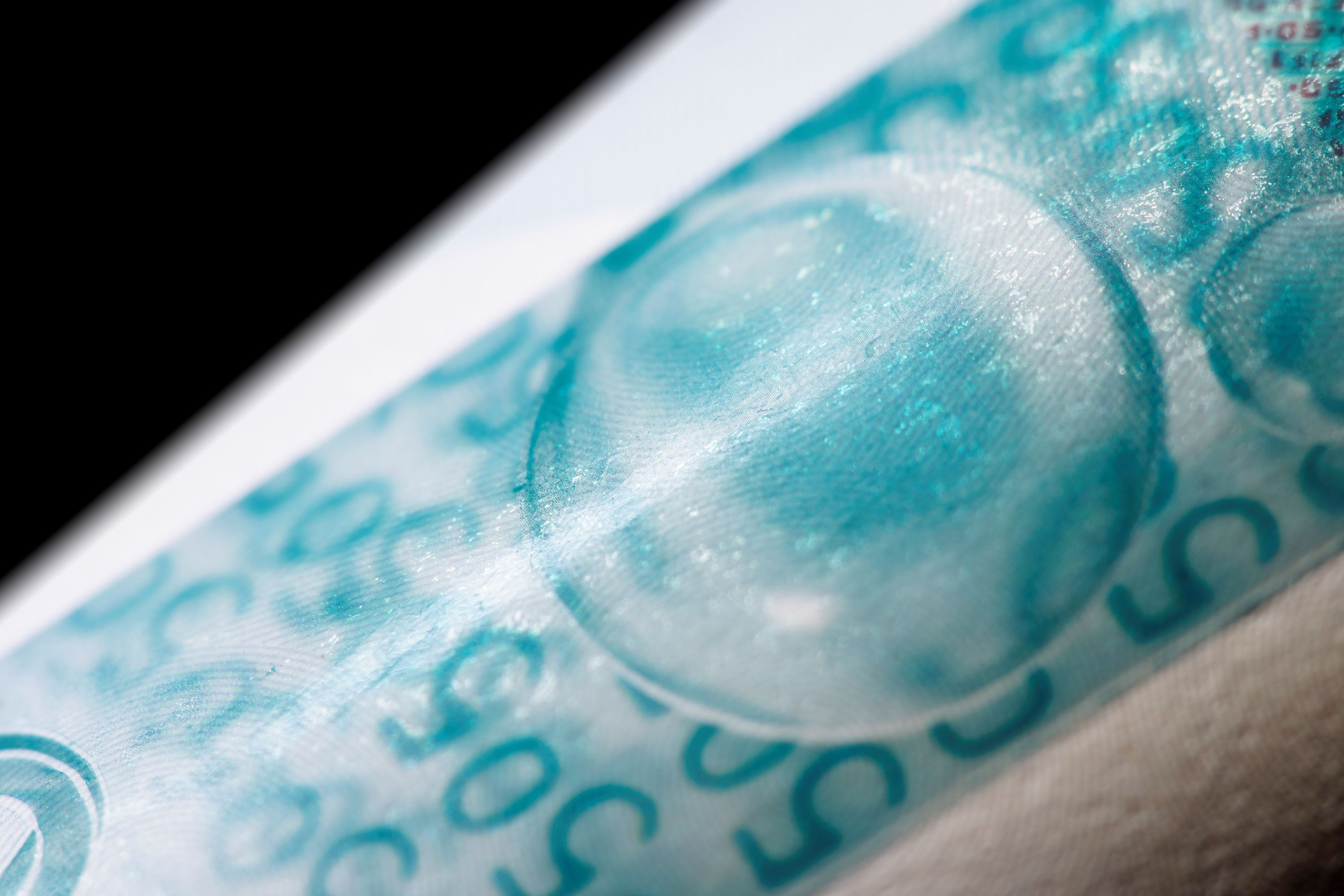 - Objects seem to be below the surface of the banknote
