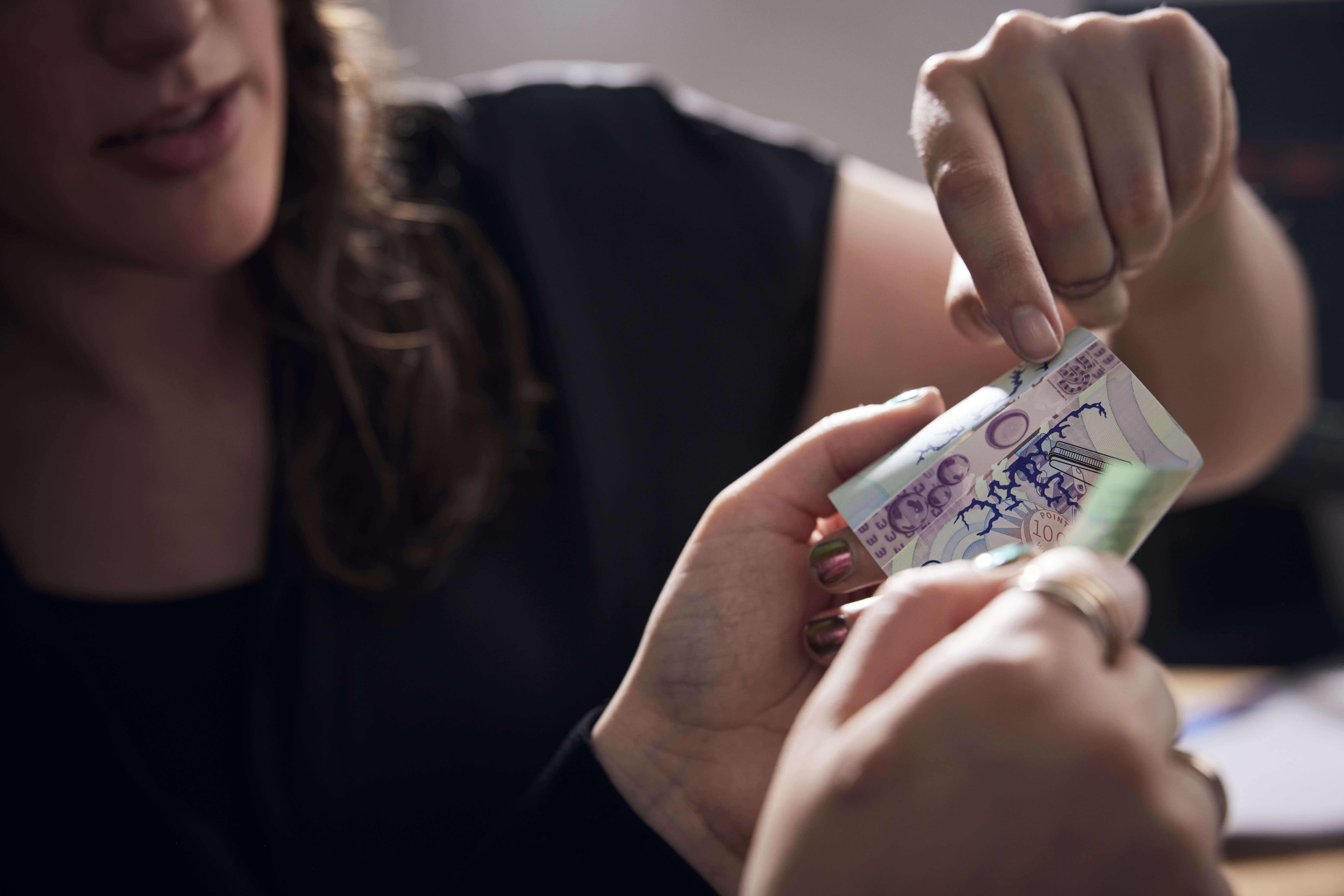 A “water droplet” seems to rest on the surface of the banknote