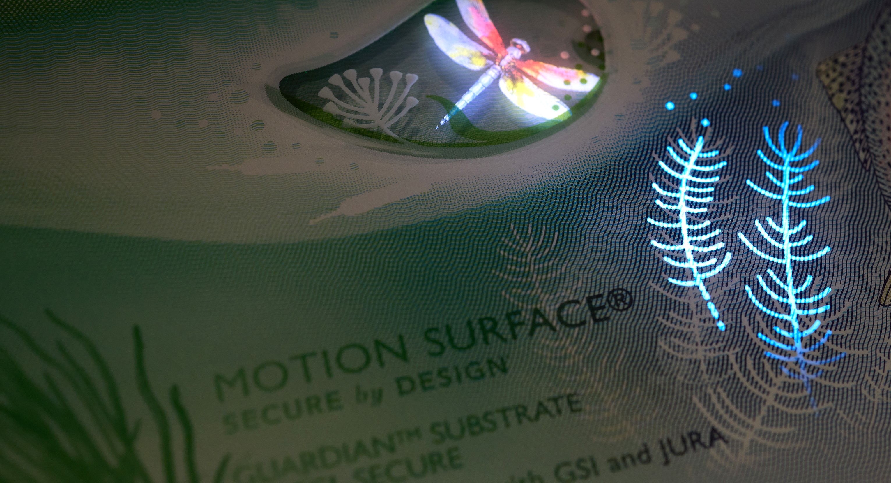 With MOTION SURFACE on polymer, all banknotes can be secured with customized visual effects that quickly communicate authenticity and make public instruction easier.