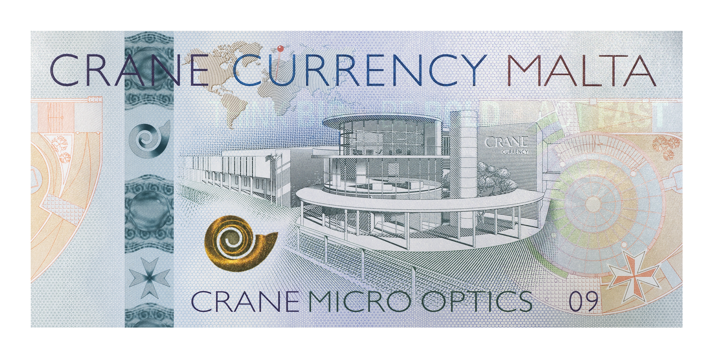 The Malta House Note was the second house note produced by Crane Currency to feature its micro-optic feature MOTION SURFACE®. From the most modern banknote printing works in the industry, and having the industry’s first micro-optic stripe, the Malta House Note speaks to the global appeal of experience and expertise, cutting-edge technology, and aesthetics.